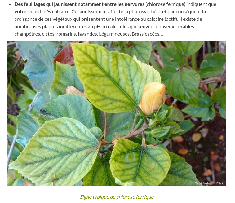 Dans le cas de carences nutritionnelles, notamment en fer, inutile de traiter avec du sulfate de fer que la plante ne pourra pas assimiler.