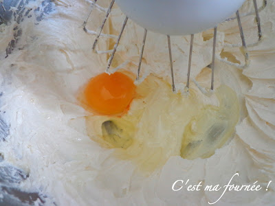 Je ne l'ai pas précisé mais cela va de soi, si les oeufs doivent être à température ambiante, c'est parce qu'il en est de même pour tous les autres ingrédients, en particulier le beurre pommade.