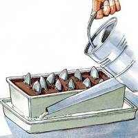 Apporter de l’eau dans le plateau sur lequel repose la caissette, l’humidification se fera par capillarité. Placer la caissette à 18 °C et à la mi-ombre.