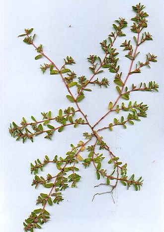 The leaves are often marked with a reddish spot in the center, a feature that led to the common name of spotted spurge.