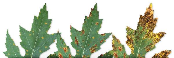 Plus la feuille est âgée, plus les symptômes seront prononcés.