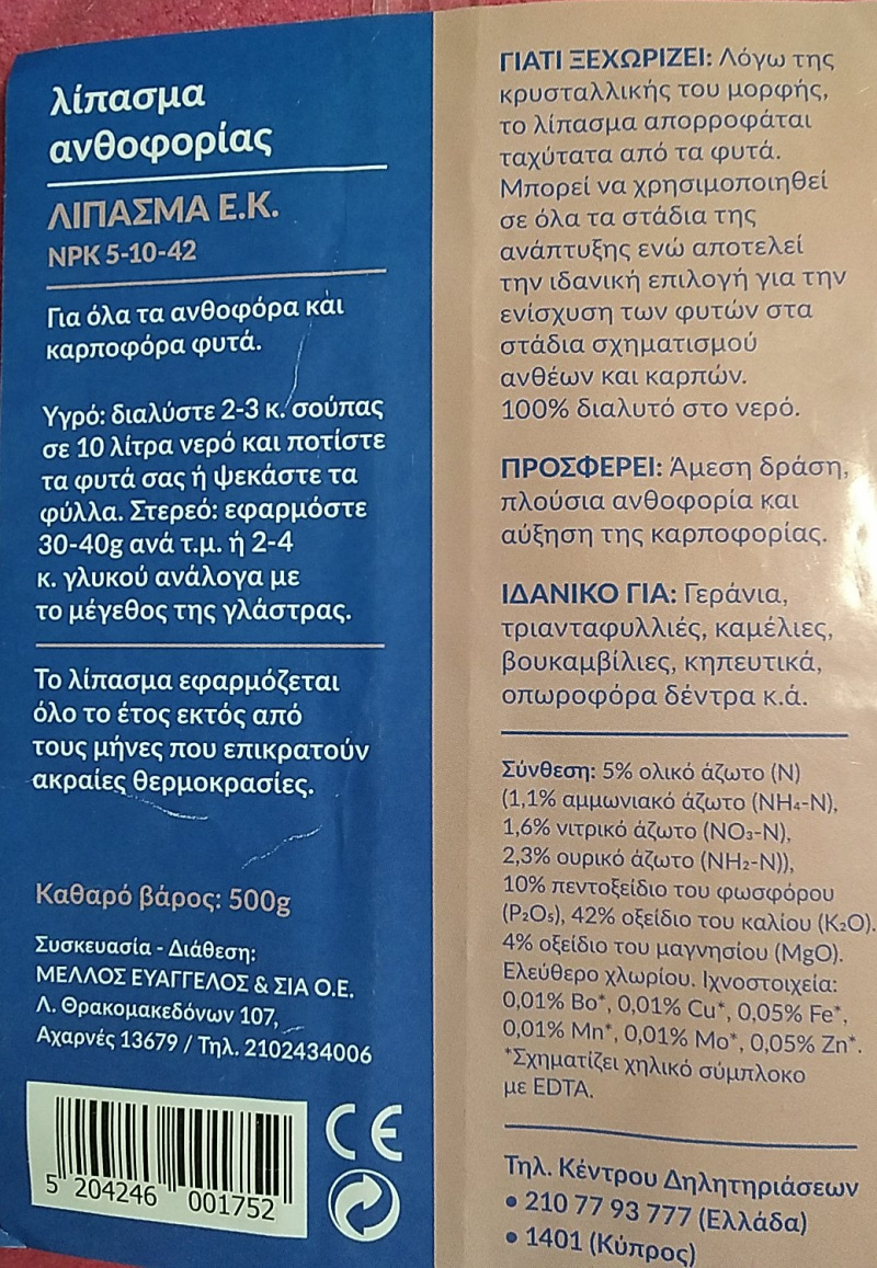 NPK λίπασμα Γενικής Χρήσης με Μαγνήσιο, Θείο, Βόριο και Ψευδάργυρο.