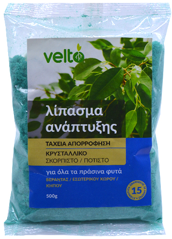 Λίπασμα VELTO για οξύφιλα 0,5 kg. Τα λιπάσματα είναι απαραίτητα για την ανάπτυξη και την παραγωγικότητα των φυτών. Με την σωστή λίπανση επιτυγχάνουμε την καλή κατάσταση του φυτού και μειώνουμε τις πιθανότητες να προσβληθεί απο κάποια ασθένεια