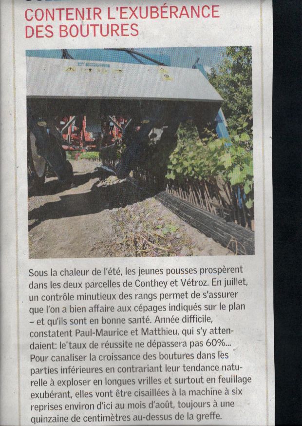Une jeune vigne plantée au printemps va produire du bois et son pied se renforce, un petit nombre de sarments ont poussés durant le printemps et l'été.